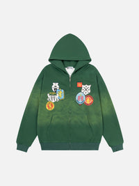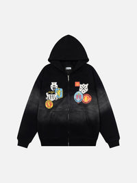 SHIELDY - Oversized Embroidered Zip Up Hoodie